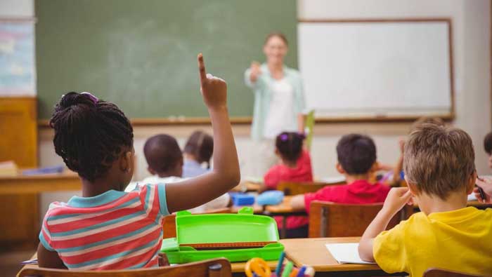 دست بلند کردن دانش آموزان برای پاسخ به سوال معلم